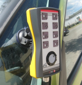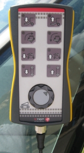Klasické tlačítkové ovladače (na obrázku varianta 8 tlačítek + 1 proporcionální ovladač) jsou používány k hydraulickým rozvaděčům s menším počtem sekcí. Řízené prvky jsou určeny odpovídajícími symboly na tlačítkách, které mohou být případně doplněny popisem. Celkový vzhled je převážně tvořen foliovým štítkem, kde jsou vyznačena tlačítka s kontrolními led diodami s vysokou svítivostí, takže jsou dobře vidět i za denního světla. Rovněž mechanická odezva tlačítek je velmi dobrá. Ovladač je navržen univerzálně pro různé potřeby řízení - funkce, rozmístění, počet a podobu tlačítek lze libovoně určovat při počátečním zadání. K dipozici je také větší varianta ovládání se čtrnácti tlačítky. Obě varinaty lze pomocí pevného přísavného držáku a hříbkového zipu (3M dual lock) upevnit na sklo kabiny.